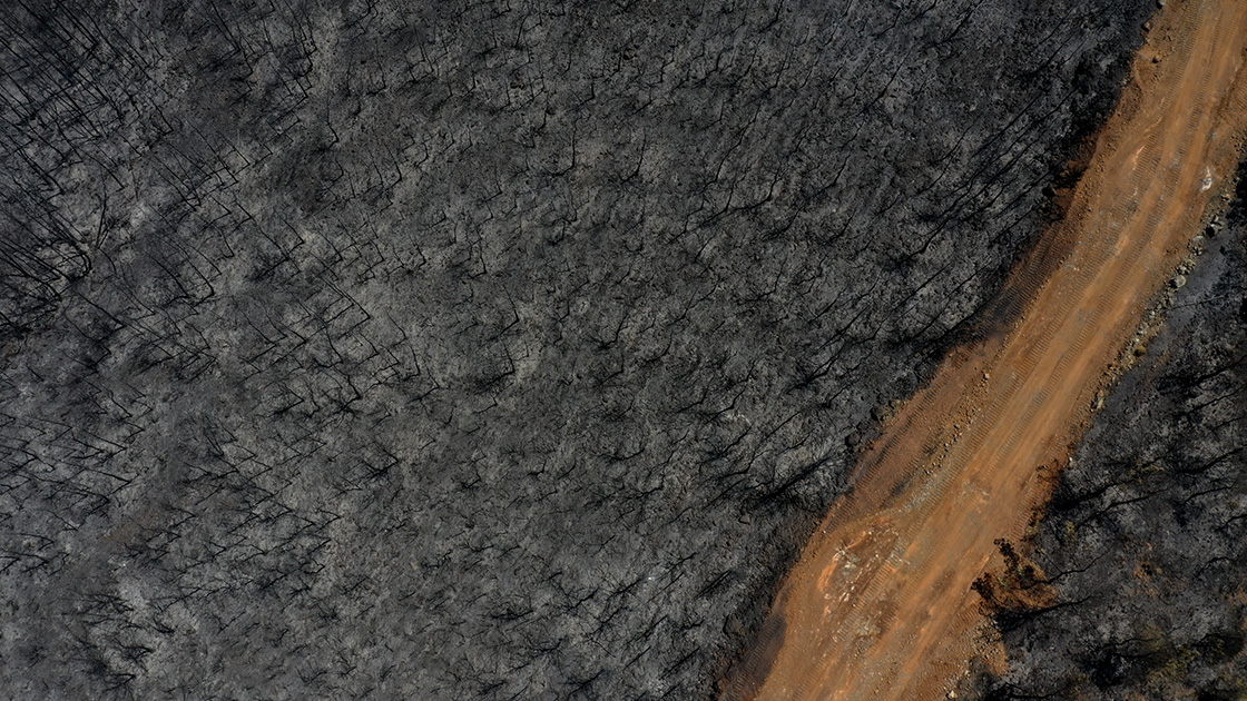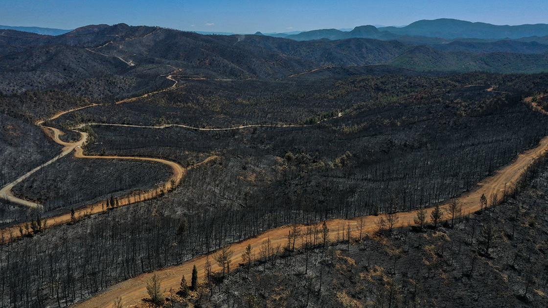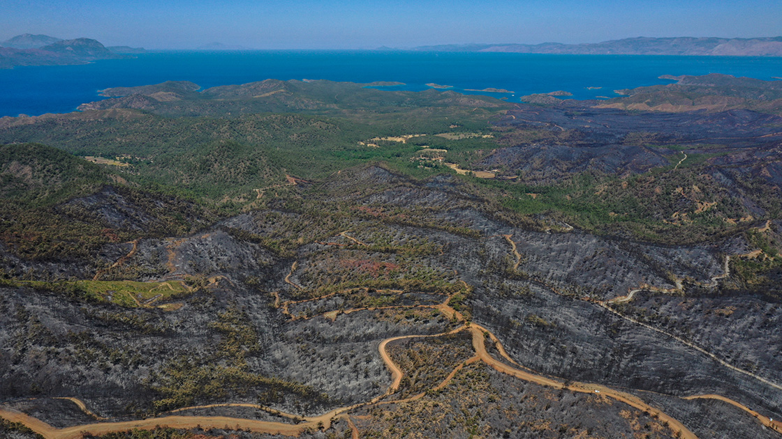 Öte yandan, 4 bin 500 hektarlık bir alanda etkili olan yangının izleri de dron ile görüntülendi.