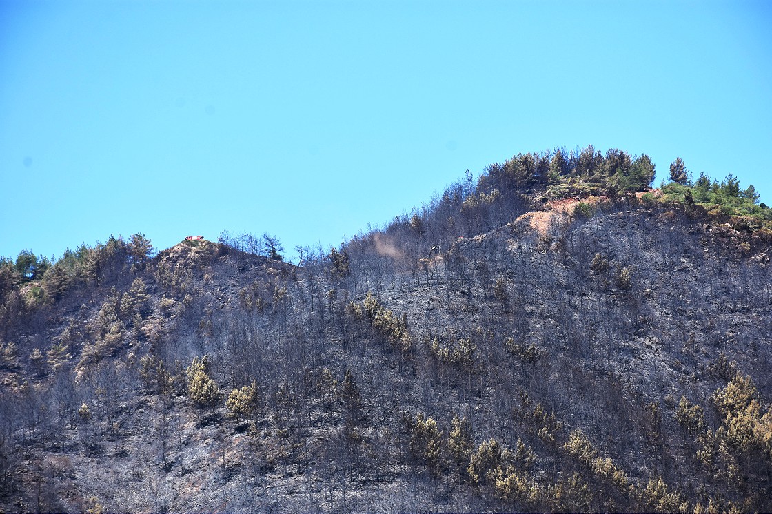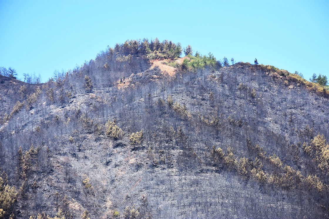 Doğa harikası bölgede adete kara bir leke olarak beliren yanan alan denizden görüntülendi. Denizden bakıldığında alevlerin beş yıldızlı otellerin bulunduğu alana az bir mesafe kala kontrol altına alındığı dikkati çekti.