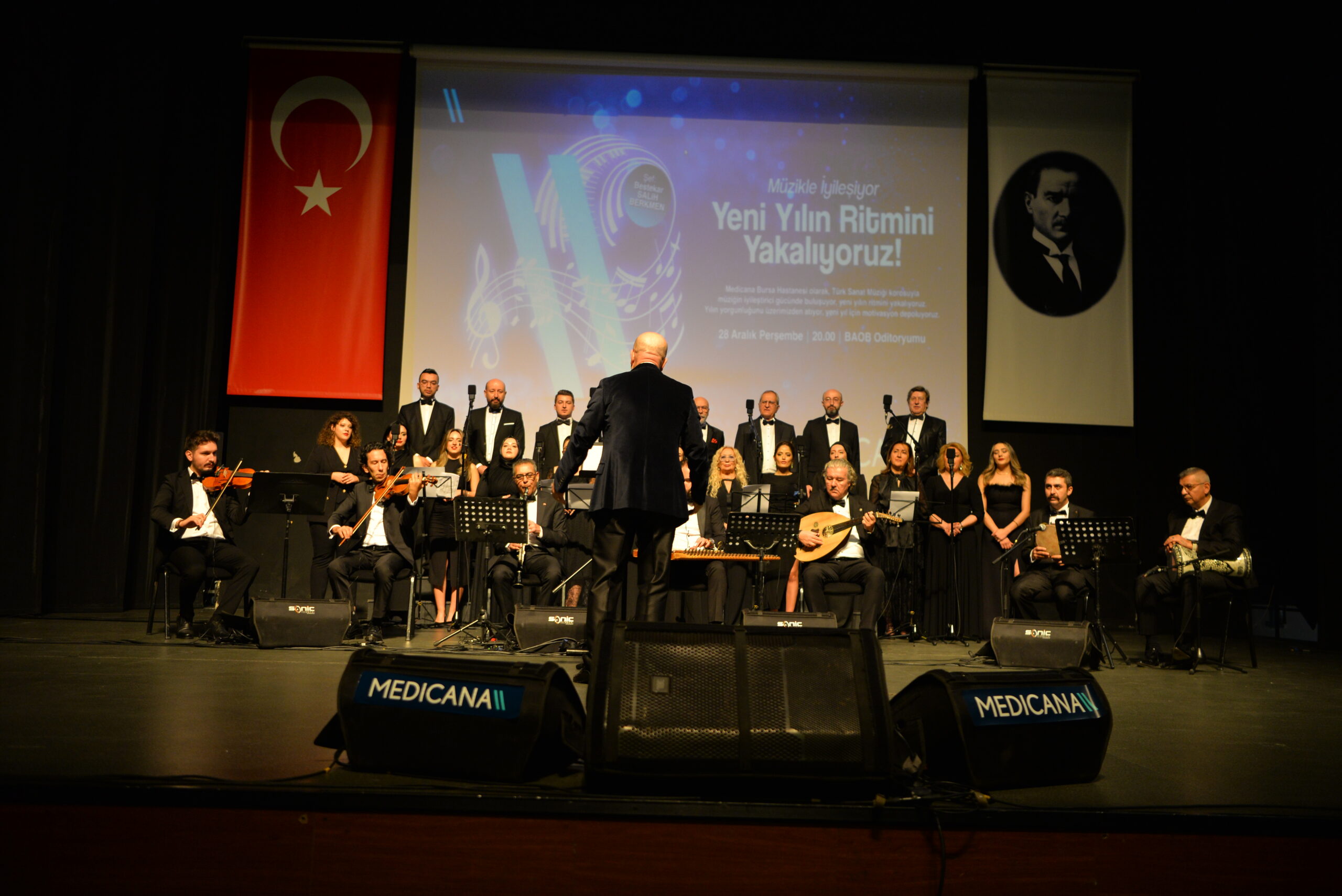 Şef Salih Berkmen yönetiminde Medicana Bursa Hastanesi Türk Sanat Müziği Korosu’nun seslendirdiği “Medicana Bursa Hastanesi sağlık için söylüyor, Yeni yılın ritmini Yakalıyor” koro ve solo eserlerden oluşan repertuarıyla 4.cü konserini 28 Aralık Perşembe günü saat 20.00 de BAOB Oditoryumu’nda gerçekleştirdi. Hastane çalışanlarına ve Bursalı Sanatseverlere açık olan ” Türk Sanat Müziği konserinde yakın zamanda kaybettiğimiz Türk Sanat Müziğinin Duayen Sanatçısı Erdinç Çelikkol’un eşi Neriman Çelikkol onur konuğuydu.