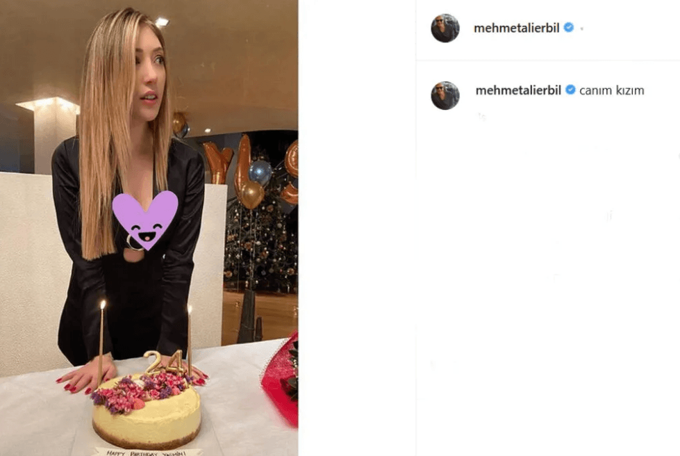 Mehmet Ali Erbil’in, kızı Yasmin’in bu fotoğrafını sansürleyerek paylaşması dikkat çekti.