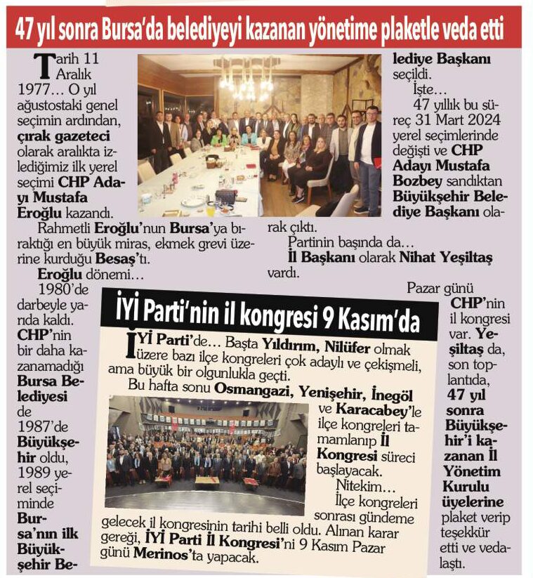 İl Başkanı Nihat Yeşiltaş, seçildiği kongrede, “Bursa’yı kazanacağız” demişti. Sanırım pek çok insan buna inanmadı ama 47 yıl sonra Bursa ve 6 ilçe CHP’li başkanların oldu.