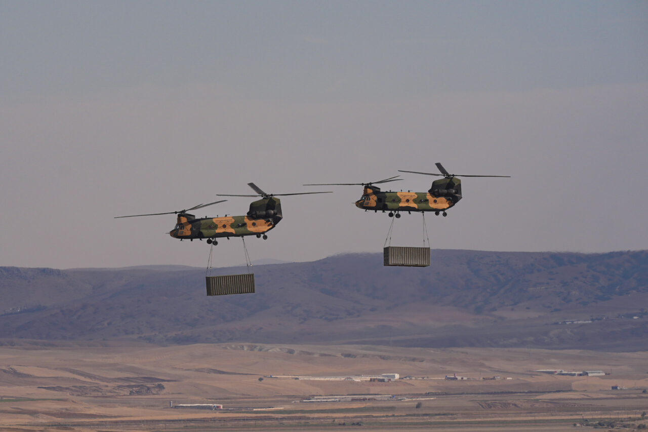 Fırtına obüslerinin hedeflerini “hedefte zaman” anlayışı ile tam isabetle vurması sonrasında “Skorsky” tipi helikopterler, topları ve CH-47 Chinook nakliye helikopterleri, mühimmat dolu konteynerleri alana taşıdı. Faaliyet sahasına havadan taşınan topların hedeflere yönelik yaptığı “görerek atışın” sonrasında obüslerce tesir atışı gerçekleştirildi.