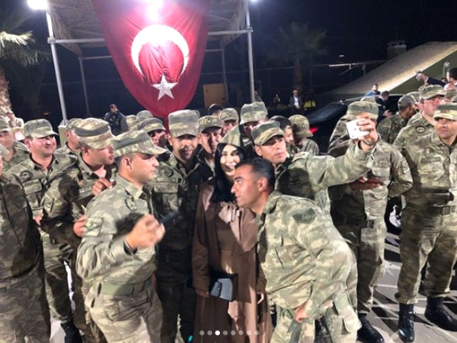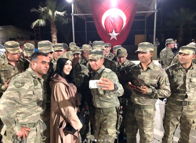Ünlü popçu Mehmetçik’le çektirdiği fotoğrafları zaman kaybetmeden Instagram hesabından takipçileriyle paylaştı.