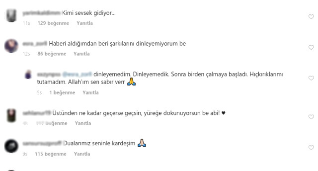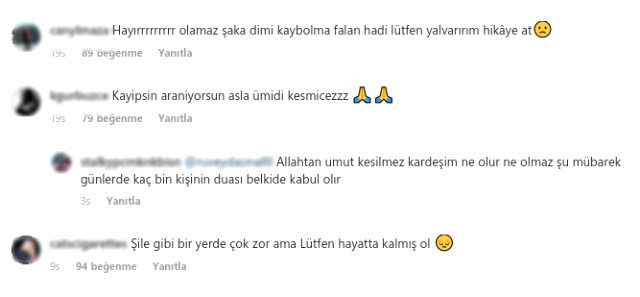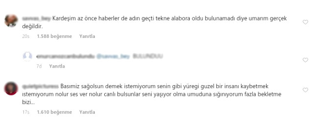 Genç müzisyenin haberini duyan hayranları üzüntülerini şarkıcının son paylaşımın altına yazdı. Genç müzisyenin kayıp haberine inanamayan sevenleri üzüntüleri şöyle yazdı: