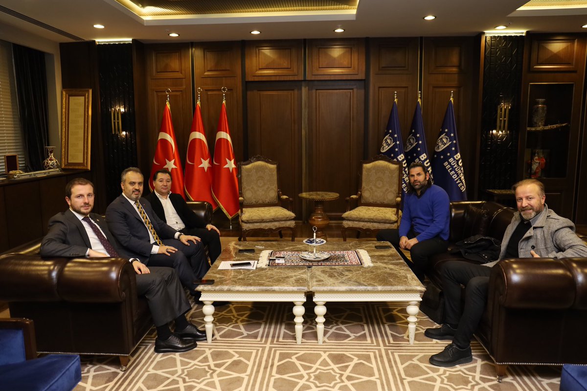 Bursaspor Başkanı Mesut Mestan ve Teknik Direktör İbrahim Üzülmez, Büyükşehir Belediye Başkanı Alinur Aktaş’la bir araya geldi.