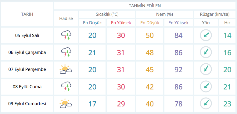 BURSA 5 GÜNLÜK TAHMİN