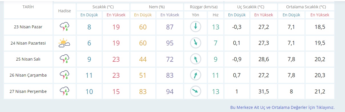 Ani sel, su baskını, yıldırım, yerel küçük çaplı dolu ve kuvvetli rüzgar gibi olumsuzluklara karşı dikkatli ve tedbirli olunması gerekiyor.