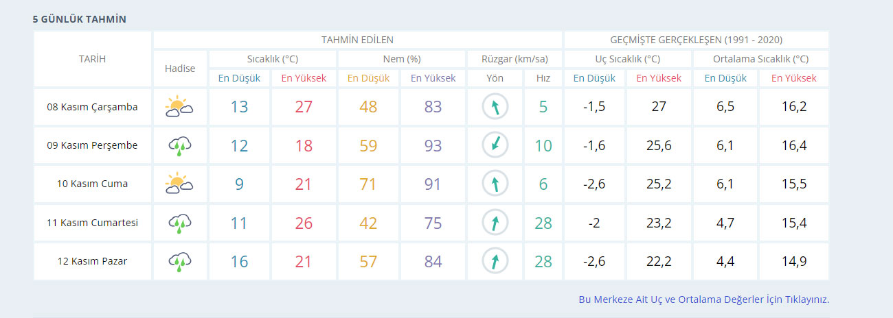 İşte Meteoroloji tarafından paylaşılan il il 5 günlük hava tahminleri…