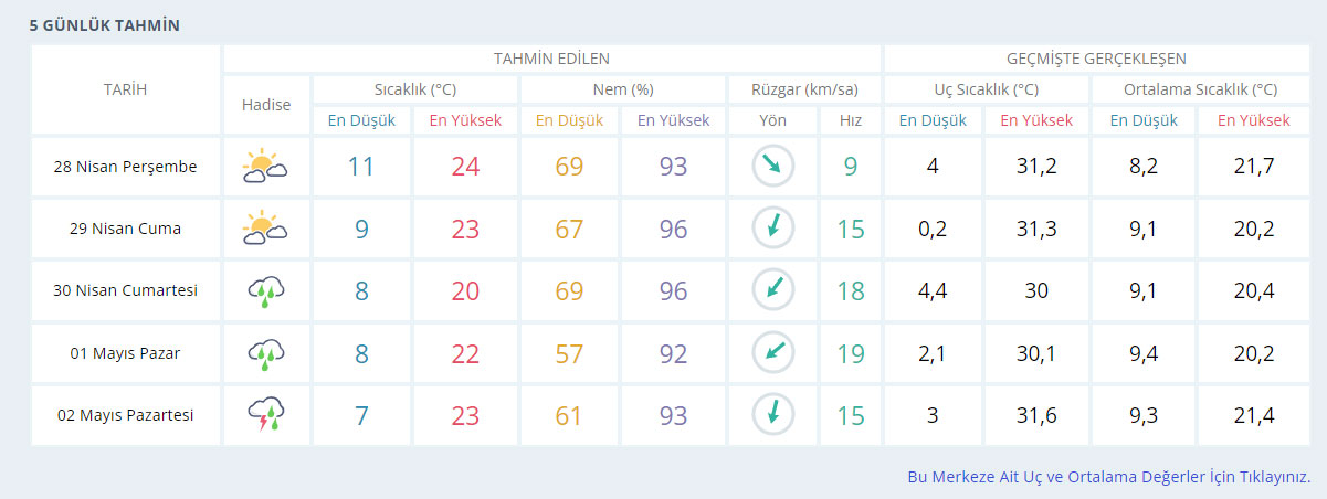 Bursa’nın 5 günlük hava tahmini