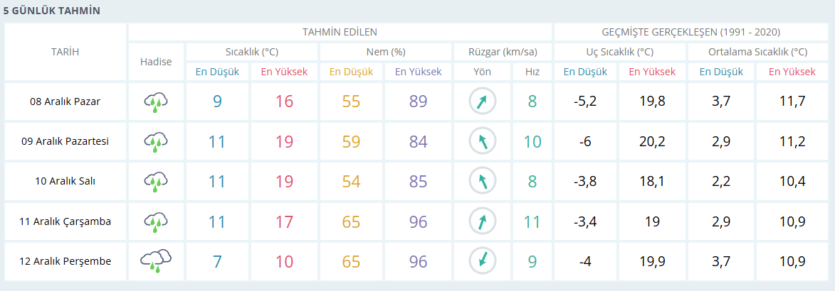 İşte Meteoroloji Genel Müdürlüğü tarafından açıklanan Bursa’nın 5 günlük hava tahmin raporu: