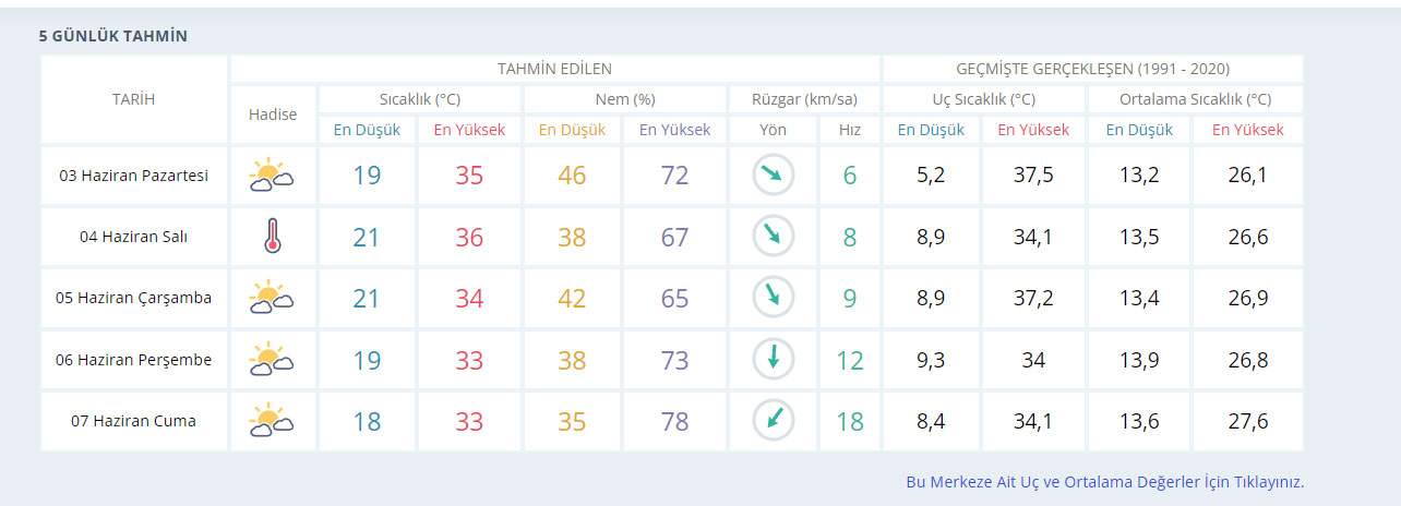 Hafta ortasında sıcaklık 2 derece daha düşecek. Çarşamba günü hava sıcaklığı en yüksek 34 derece.