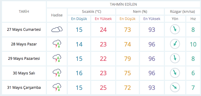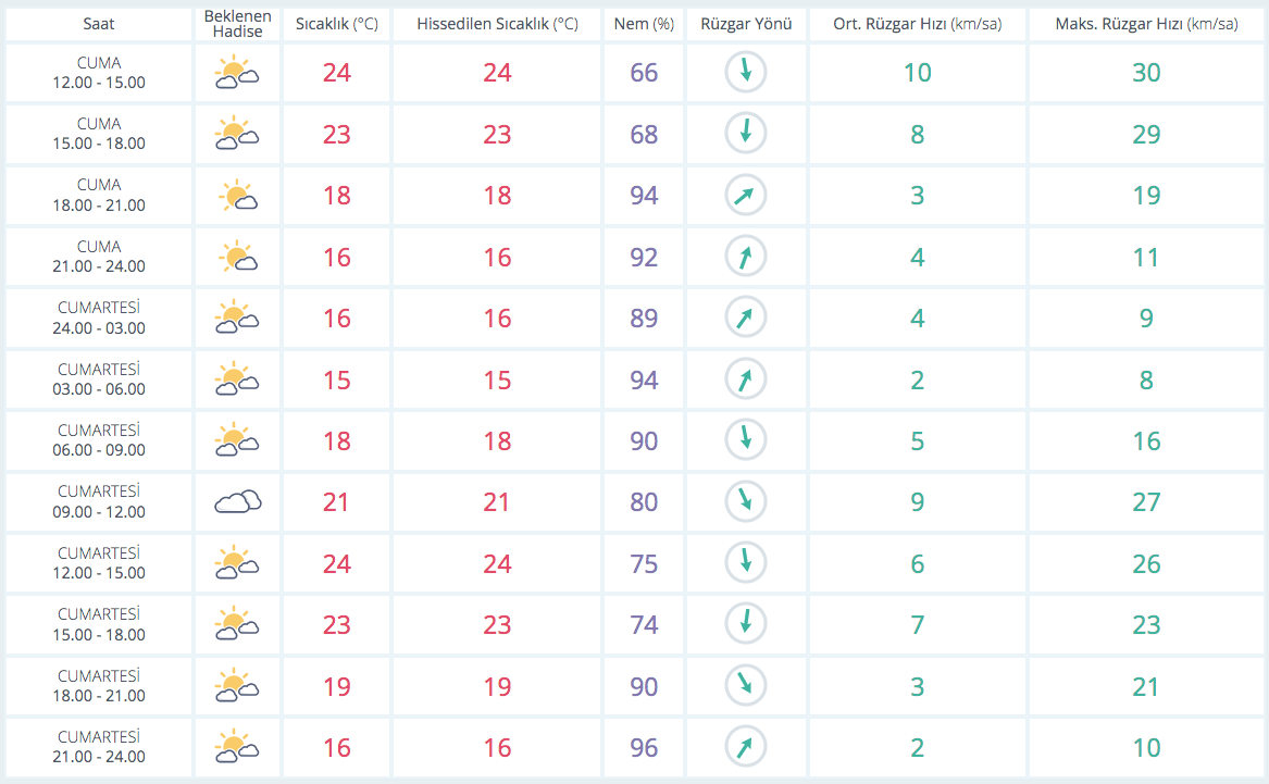 Meteoroloji’nin saatlik tahmin raporu şöyle: