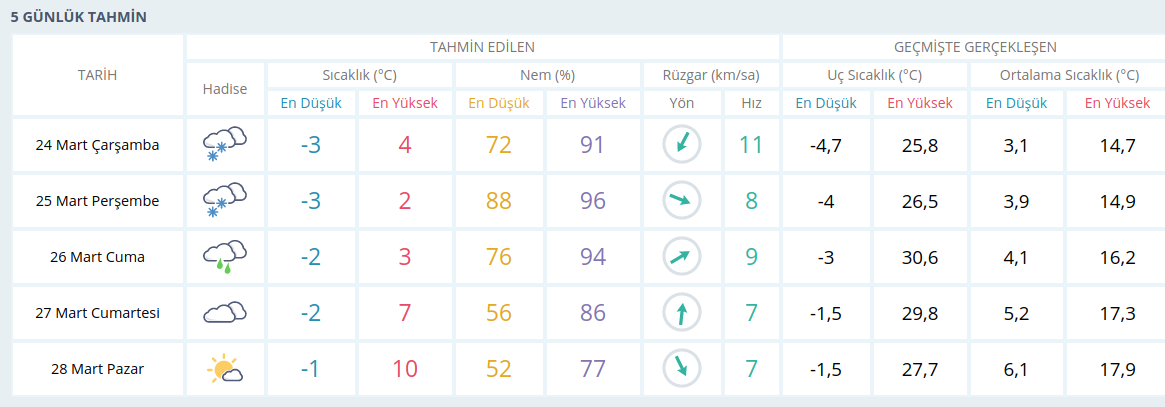 BURSA İÇİN 5 GÜNLÜK HAVA TAHMİNİ ŞÖYLE
