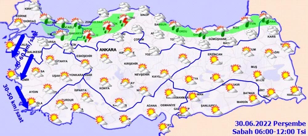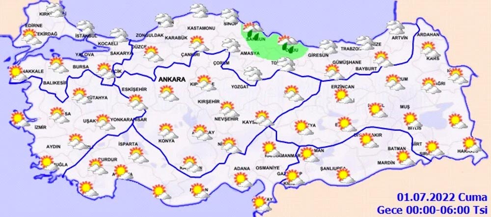 Karadeniz’de gün içinde Samsun-Rize arasındaki bölüm ile Bolu tarafında yine yağmur geçişleri olacak. Batı Karadeniz’de heyelan riski bulunuyor.