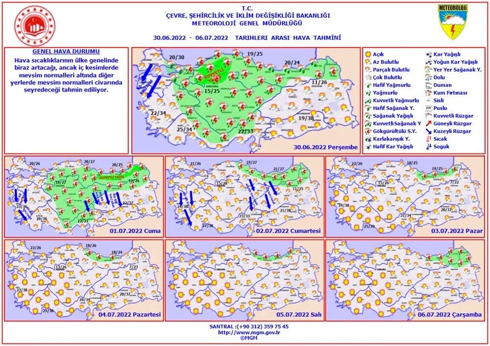 Ayrıca, Meteoroloji Genel Müdürlüğü (MGM) haftalık hava tahmini raporu da bu şekilde paylaştı.