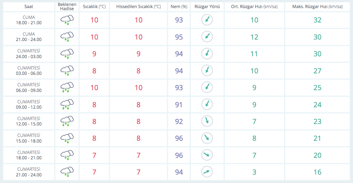 Bu gece ve yarın sabah saatlerinden itibaren de Tunceli, Bingöl, Muş, Diyarbakır, Mardin, Batman, Siirt, Bitlis, Şırnak ve Hakkari çevreleri ile Şanlıurfa’nın kuzeyinde kuvvetli, Diyarbakır ve Adıyaman’ın kuzeyinde kuvvetli, yer yer çok kuvvetli yağmur ve sağanak etkili olacak.