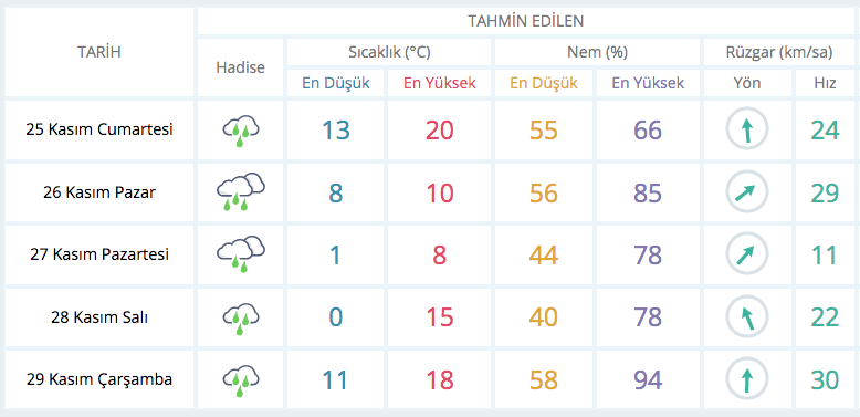 Meteoroloji’nin tahmin raporuna göre Bursa’da 5 günlük hava durumu şu şekilde: