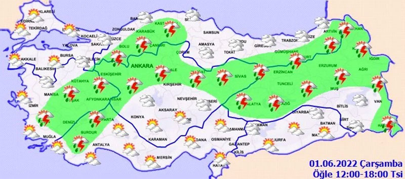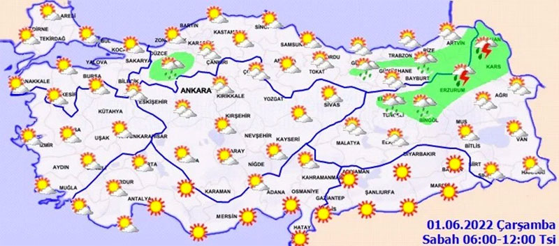 Tahminlere göre hava sıcaklıkları Ankara’da 31-34, İstanbul’da 28-31, İzmir’de 32-34, Aydın’da 35-38, Antalya’da 29-30, Adana’da 34-35, Malatya’da 32-36, Diyarbakır’da 36-40 derece civarında seyredecek.