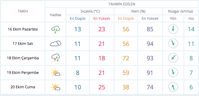 Parçalı ve çok bulutlu, aralıklı ve yerel olmak üzere sağanak ve gök gürültülü sağanak yağışlı geçeceği tahmin ediliyor. Yağışların, öğle saatlerinden sonra yer yer kuvvetli olması bekleniyor.