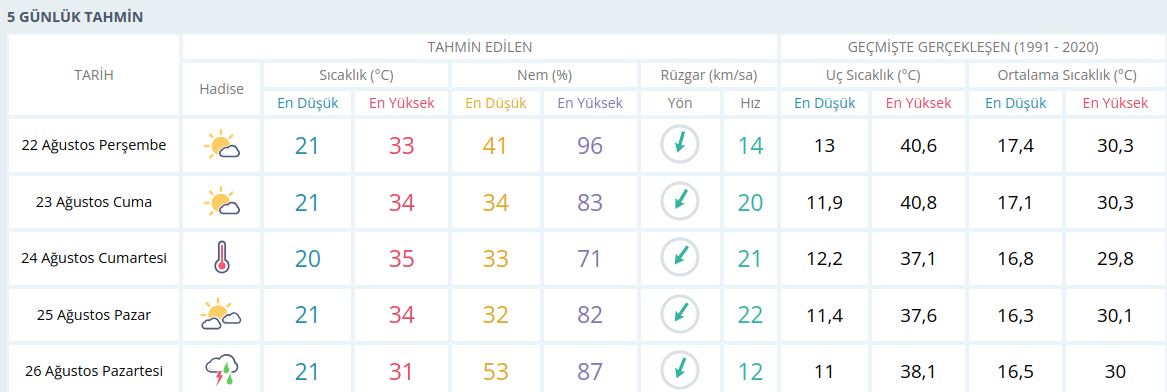 İzmir’de gelecek 3 gün boyunca yağış beklentisinin söz konusu olmadığını bildiren Macit, sıcaklıkların 36 ila 37 derece civarında olacağını aktardı.