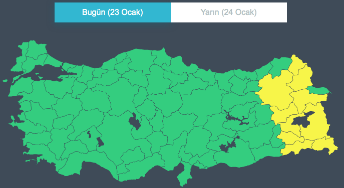 Kar yağışlarının; Kars, Ardahan ve Ağrı ile kuzey ve doğu ilçeleri başta olmak üzere Erzurum çevreleri ve Muş’un yükseklerinde kuvvetli (10-20 cm), Bitlis, Van’ın kuzey ve güney ilçeleri, Siirt’in yüksekleri, Şırnak’ın doğusunun yüksekleri ile yüksek kesimleri başta olmak üzere Hakkari’de yer yer yoğun (20 cm üzeri) karla karışık yağmur ve kar şeklinde olması beklendiğinden ulaşımda aksamalar, buzlanma ve don, çığ, tipi gibi olumsuzluklara karşı dikkatli ve tedbirli olunması gerekmektedir.