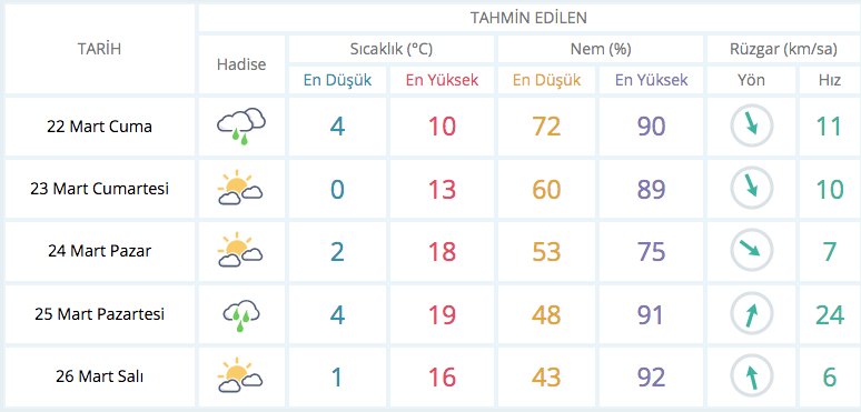 Meteoroloji Genel Müdürülüğü’nün tahmin raporuna göre, Bursa’da 5 günlük hava durumu şöyle olacak: