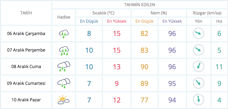 BURSA’DA 5 GÜNLÜK HAVA TAHMİNİ