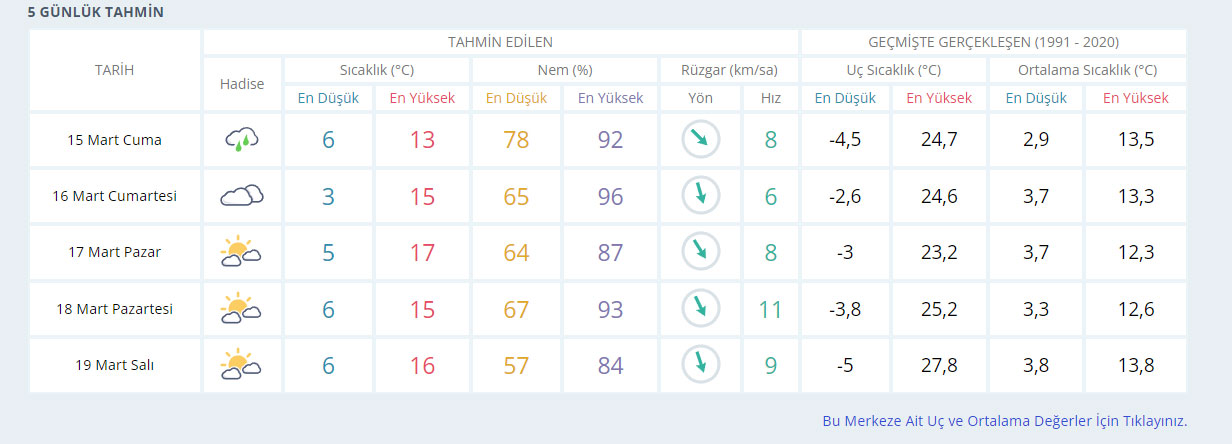 Meteoroloji’nin Bursa için hazırladığı 5 günlük hava tahmin raporu