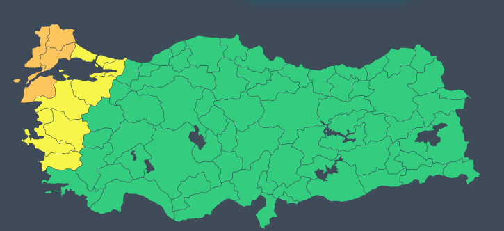 “Rüzgarın; güney ve güneybatı yönlerden kuvvetli ve fırtına (50-70 km/saat) şeklinde esmesi beklendiğinden ağaç ve direk devrilmesi, çatı uçması ve ulaşımda aksamalar gibi olumsuzluklara karşı dikkatli olunması gerekmektedir.”