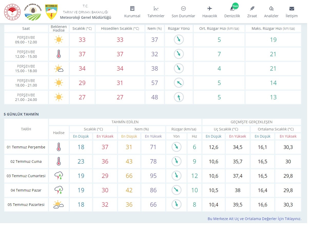 Verilere göre bu zamana kadar 1 Temmuz tarihinde ölçülen en uç sıcaklık 34,5 olurken, bugün termometrelerin 15.00-18.00 saatleri arasında 37 derece göstermesi bekleniyor.