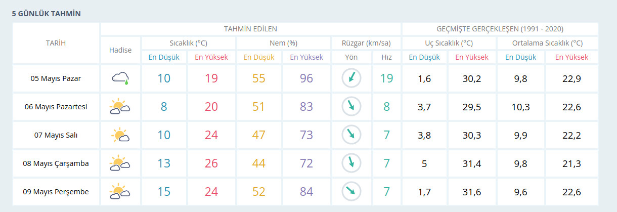 Hava sıcaklıklarının ülke genelinde mevsim normalleri civarında, yer yer altında seyredeceği, Çarşamba günü batı bölgelerden başlayarak biraz artacağı tahmin ediliyor. pic.twitter.com/NffQKIVrYk— Meteoroloji (MGM) (@meteoroloji_twi) May 4, 2024