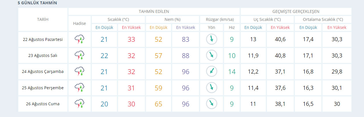 Meteoroloji Genel Müdürlüğü tarafından yapılan son değerlendirmelere göre: ülkenin kuzey ve iç kesimleri ile Doğu Akdeniz’in parçalı ve yer yer çok bulutlu, Doğu Akdeniz, Doğu Karadeniz’in iç kesimleri, Doğu Anadolu’nun kuzeyi, Edirne, Kırklareli, Balıkesir, Bursa, Bilecik, Sakarya, Düzce, Bolu, Karabük ve Van çevreleri, İstanbul’un Avrupa Yakası’nın kuzeyi ile Çanakkale’nin kuzey ve doğu, Kütahya’nın kuzey kesimlerinin yerel olmak üzere sağanak ve gök gürültülü sağanak yağışlı, diğer yerlerin az bulutlu ve açık geçeceği tahmin ediliyor.