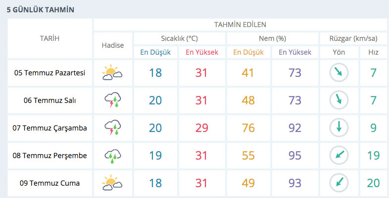 BURSA 5 GÜNLÜK HAVA TAHMİNİ