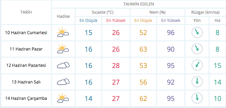 BURSA 5 GÜNLÜK HAVA DURUMU