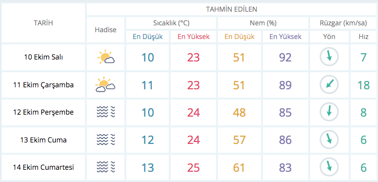 Bursa 5 günlük tahmin