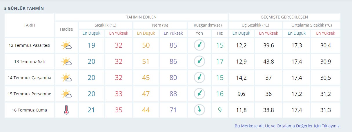 Hava sıcaklıklarının genellikle mevsim normalleri üzerinde, iç kesimlerde yer yer mevsim normalleri civarında seyredeceği tahmin ediliyor. pic.twitter.com/f8FKB84rG1— Meteoroloji (MGM) (@meteoroloji_twi) July 11, 2021