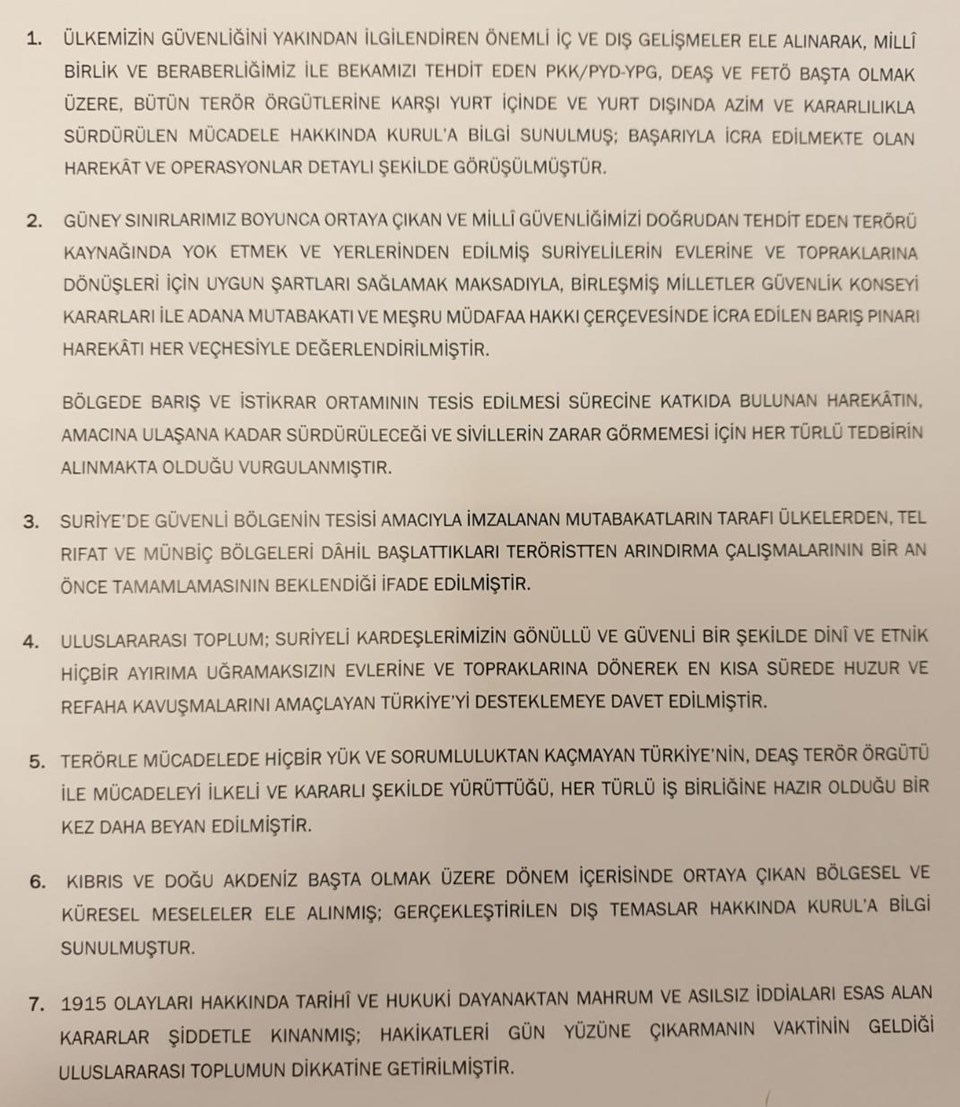 Cumhurbaşkanı Recep Tayyip Erdoğan başkanlığındaki Milli Güvenlik Kurulu (MGK) toplantısı sona erdi.