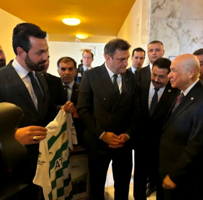 Salı günü TBMM’de katıldıkları MHP Grup Toplantısı’nın ardından, üzerinde Bursasporlu futbolcuların imzalarının olduğu Bursaspor formasını MHP Genel Başkanı Devlet Bahçeli’ye takdim ettiler.