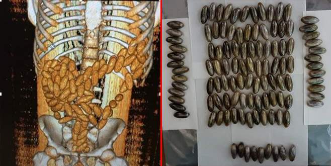 Hastanede röntgeni çekilen M.M’nin midesinde de 102 kapsül daha bulunduğu tespit edildi. M.M’nin midesindeki kapsüller doğal yollarla çıkarıldı. Ele geçirilen 111 kapsülde 480 gram esrar olduğu belirlendi.