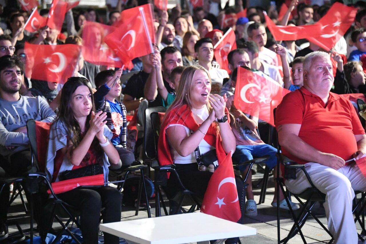 Osmangazi Meydanı’na kurulan dev ekrandan binlerce kişi ellerinde Türk bayraklarıyla final mücadelesini büyük bir coşkuyla izledi.