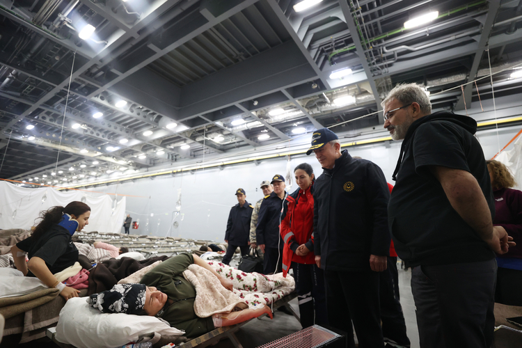 Milli Savunma Bakanı Hulusi Akar da beraberinde Genelkurmay Başkanı Orgeneral Yaşar Güler, Deniz Kuvvetleri Komutanı Oramiral Ercüment Tatlıoğlu ve Hava Kuvvetleri Komutanı Orgeneral Atilla Gülan ile hastanede olarak hizmet veren gemide incelemelerde bulundu, tedavi gören vatandaşları ziyaret etti.
