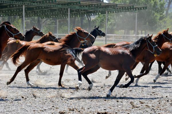 Yüksek sesten, görüş mesafesinin dışında olunmasından rahatsız olan, ilgi, sevgi ve özgürce koşmaktan hoşlanan atların bu özelliklerini dikkate aldıklarını söyleyen Veteriner Hekim Ali Yağlıca, her yıl 100- 110 tayın, 2’si işletmelerinde 1’i ise İstanbul Veli Efendi Hipodromu’nda olmak üzere 3 kez açık artırma ile satışa çıkartıldığını, geçen sene ‘Sürgün Kral’ isimli tayın 1 milyon liraya alıcı bulduğunu belirti. Yağlıca, “1932 ile 1936 yılları arasında, Mustafa Kemal Atatürk’ün talimatıyla, koşu ve yarış amacıyla Arap atı yetiştirilmesi için uzman bir heyet Arap ülkelerine gönderildi. Bu heyet yaptıkları inceleme sonrası ‘Baba Kuruş’ ve ‘Baba Şa’d’ ile bazı kısrakları alıp haraya getirdiler. Böylece burada koşu amaçlı safkan Arap atı yetiştiriciliği başladı. Arap atlarının atası olan Baba Kuruş ve Baba Şa’d öldükten sonra, Arap yarış atı yetiştiriciliğinin temelini oluşturdukları için unutulmamaları için anıt mezarları yapıldı. Tarım işletmemizde aygır, kısrak ve tay olmak üzere 600 baş atımız bulunuyor. Bu atlar yaz aylarında gün içinde, içerde akşam saatlerinde serinlemek için dışarıda kalıyorlar. Sabaha kadar serin ortamda dinlenip uyuyorlar. Atlarımız sıcak kanlılardırlar. Merada rahat gezmekten ve koşmaktan çok hoşlanırlar. Yüksek sesten, kötü muameleden, kızgın davranılmasından, arka taraflarına geçilmesinden hoşlanmazlar. Atların görüş alanında olmamız gerekiyor” dedi.