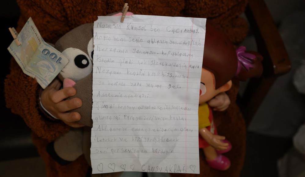 Cansu, ihtiyaçlarını karşılaması için 100 lira para, kendi oyuncakları ve yazdığı bir mektubu ‘manevi kardeşine ulaştırılmak üzere’ Bursa Büyükşehir Belediyesi’ne teslim etti.