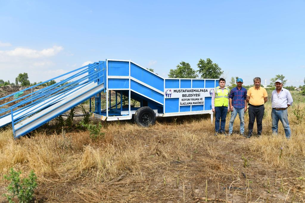 Mustafakemalpaşa Belediye Başkanı Mehmet Kanar ‘’ Üreticilerimize ve çiftçilerimize derya deniz hizmet vermeye devam ediyoruz. Kendi üretimimiz olan, ekip arkadaşlarımızın emeği Mobil Koyun Banyosu, bu senede hizmette, tamamen ücretsiz bir şekilde köy köy gezmek için gün sayıyor. Her anlamda Mustafakemalpaşa’nın gelişimi için çalışıyoruz. Gerek tarım ve hayvancılık, gerek turizm ve kültür tüm çabalarımız gayretlerimiz Mustafakemalpaşa için.’’ dedi.