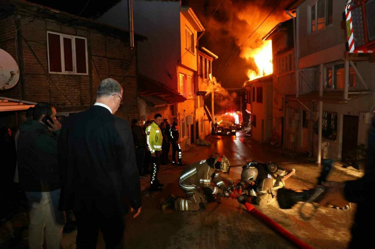 Mudanya’nın Şükrü Çavuş Mahallesi’ne bağlı Harmanlar Caddesi’nde müstakil bir evde yangın çıktı. Rüzgarın da etkisiyle kısa sürede çevre binalara sıçrayan yangında beş ev hasar görürken, üç ev kullanılamaz hale geldi.