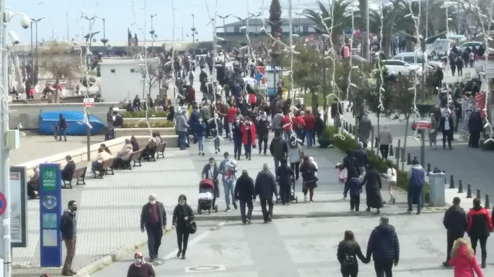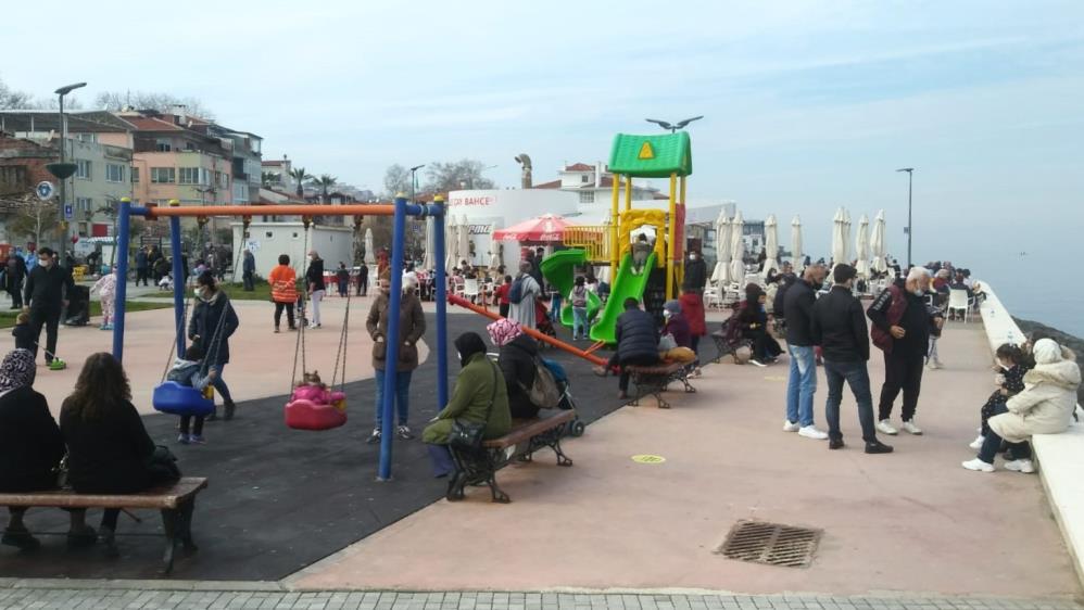 Bursa’nın sahil ilçelerinden biri olan Mudanya’da vakit geçiren vatandaşlar, genel olarak sosyal mesafe ve maske kurallarına riayet ettiği gözlendi.