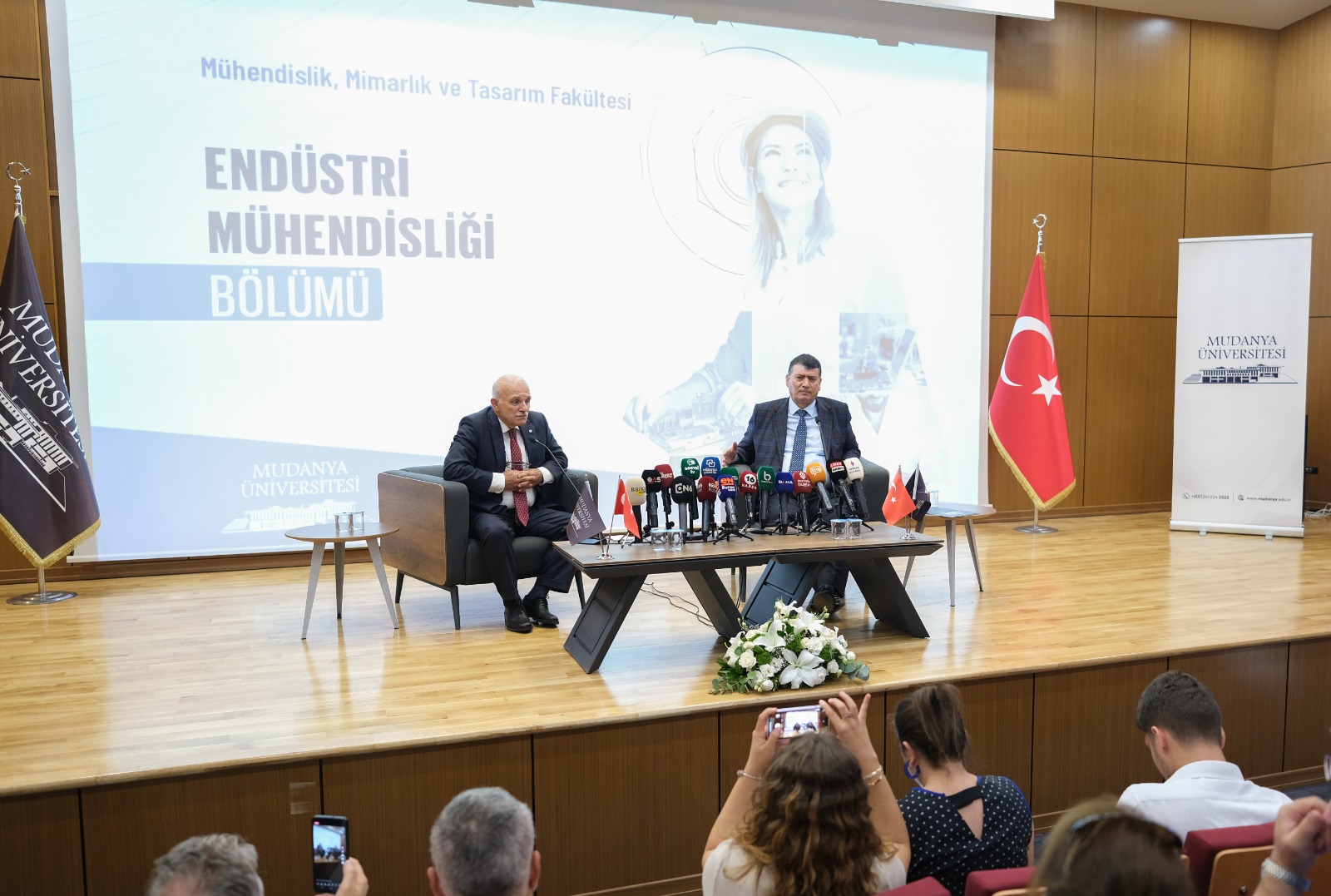 Üniversiteyi ve yeni açılacak bölümleri tanıtan Mudanya Üniversitesi Rektörü Prof. Dr. Hasan Tosun da, bilgi üreten ve bilgiyi transfer eden 4. Nesil bir üniversite olacaklarını kaydederek, ilk yılda yaptıkları çalışmaları anlattı. Tosun, “6 Şubat’ta meydana gelen depremden dolayı öğrencilerimizden bir süre ayrı kaldık. Bu hepimizi üzdü. Öğrencilerimizle birlikte olduğumuz süre içerisinde onların mutlu bir üniversite hayatı yaşamaları ve her yönden yetişmeleri için çalıştık. Uygulamalı eğitimlere çok önem veriyoruz. Meslek Yüksekokulumuzdaki sağlık programlarında eğitim gören öğrencilerimiz, ilk yıllarında anlaşmalı hastanemiz Medical Park’ta öğrendiklerini uygulama şansı buldular. Yine Endüstri Mühendisliği öğrencilerimiz protokol imzaladığımız kurumlara saha ziyaretleri gerçekleştirdiler. Bu uygulamamız önümüzdeki yıllarda artarak devam edecek. Amacımız dünya vatandaşı yetiştirmek. Bu nedenle öğrencilerimizin yurt dışı tecrübe edinmeleri de bizim için çok önemli. Bunu sağlamak amacıyla yaptığımız çalışmalar kapsamında bir üniversitenin Erasmus programına dahil olabilmesi için gerekli olan ECHE belgesi aldık. Bu sonuçla Mudanya Üniversitesi, ECHE belgesine sahip 195 kurum arasında yerini aldı” ifadelerini kullandı.
