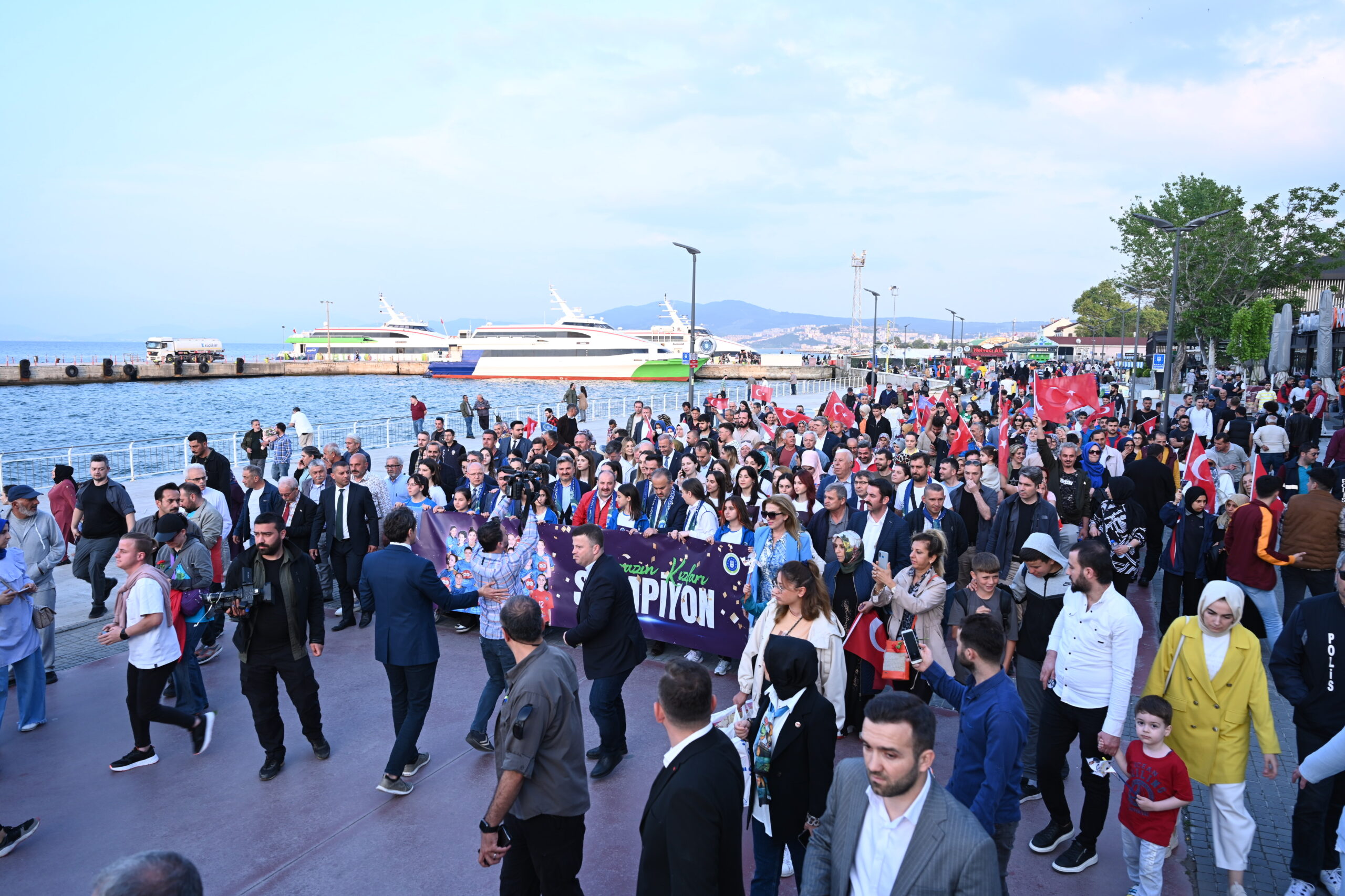 Zonguldak’ta düzenlenen Kadınlar Hentbol 1’inci Ligi play-off maçlarında şampiyon olan, ’Poyrazın Kızları’ olarak anılan Bursa Büyükşehir Belediyespor Kulübü Kadın Hentbol Takımı için Mudanya’da coşkulu bir kutlama yapıldı. Bursa Büyükşehir Belediye Başkanı Alinur Aktaş ile Sanayi ve Teknoloji Bakanı Mustafa Varank’ın da katıldığı etkinlikte BUDO İskelesi’nden Mudanya Mütareke Meydanı’na kadar kortej yürüyüşü düzenlendi. Mudanyalıların alkışları arasında yapılan kortejin ardından Mütareke Meydanı’nda kutlamalar başladı.