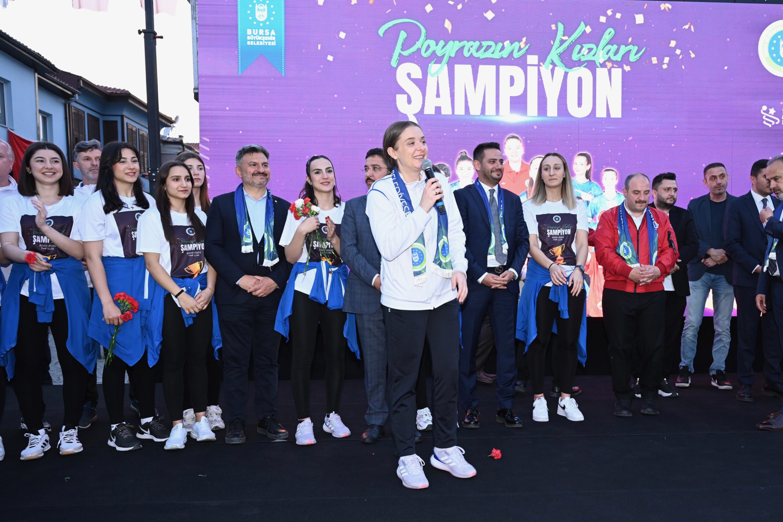 Kutlama töreninde konuşan Takım Kaptanı Melike Kasapoğlu, hikayelerinin 10 yıl önce ilkokulun bahçesinde başladığını ve bu 10 yıla pek çok başarı sığdırdıklarını söyledi. Bu süre içinde çok güzel şeyler başardıklarını kaydeden Kaptan Melike, “Poyrazın Kızlarının gücü, Büyükşehir’in gücüyle birleşince gerçekten güzel şeylere imza attık. Destekleri için başkanımıza teşekkür ederiz” dedi.