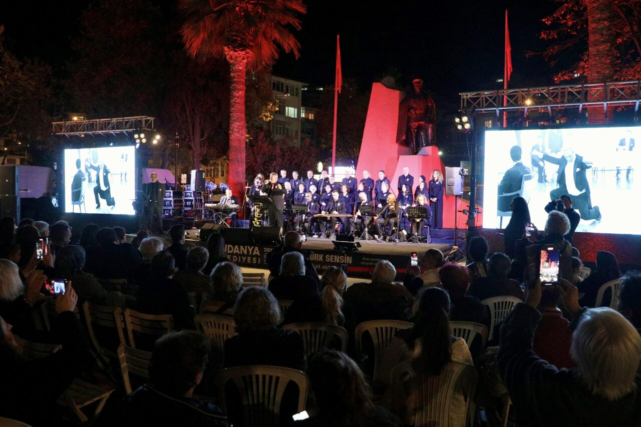 Mudanya Belediyesi tarafından “Atatürk Sensin” temasıyla düzenlenen anma etkinlikleri Mütareke Meydanı’ndan 10 Kasım Yürüyüşü ile başladı. İskele Meydanı’nda devam eden etkinlerde yüzlerce Mudanyalı, Atatürk’e saygısını ve sevgisini göstermek için bir araya geldi. Emine Örnek Okulları öğrencilerinin sahnelediği “Son Bakış” adlı tiyatral gösteri izleyenlere duygu dolu anlar yaşatırken, Tuğra Yıldız ile oğlu Ata Yıldız’ın zeybek gösterisi büyük alkış aldı. Yaratıcı Drama Eğitmeni İbrahim Zeki Karabulut’un Atatürk’ün yaşamından kesitler sunduğu anlatımı eşliğinde Mudanya Kültür ve Sanat Derneği üyeleri, Atatürk şarkı ve marşlarını Mudanyalılar ile birlikte seslendirdi.